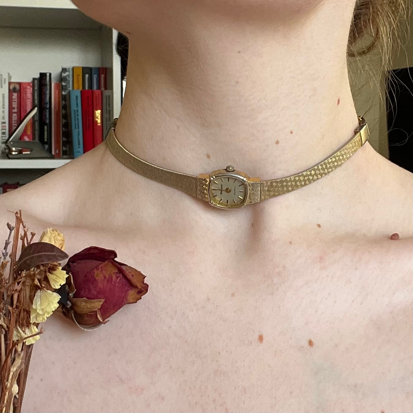Watch, and freshwater pearls are sourced from charity shops and car boot fares.